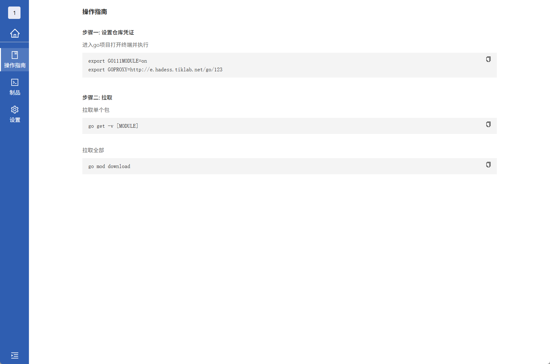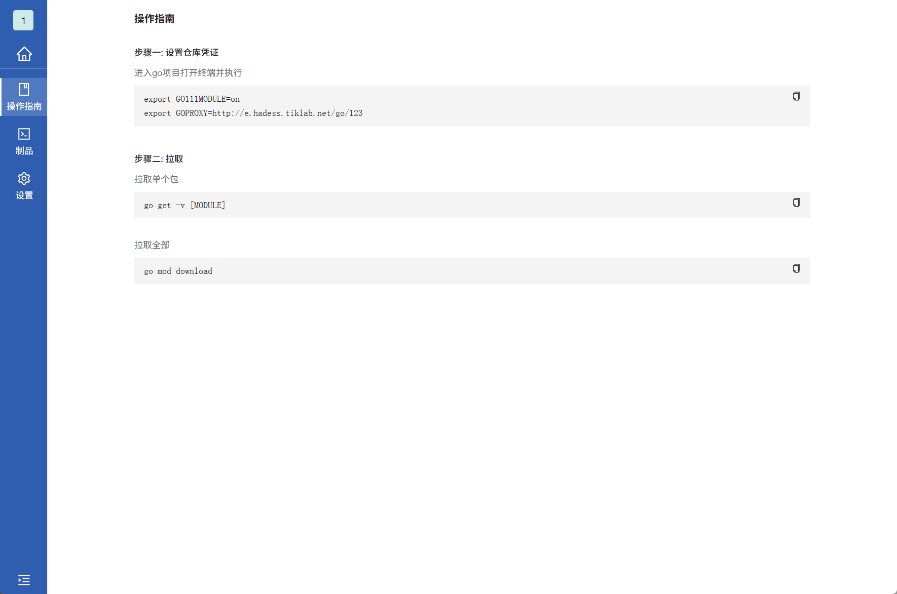进入Go类型远程库,查看操作指南的拉取