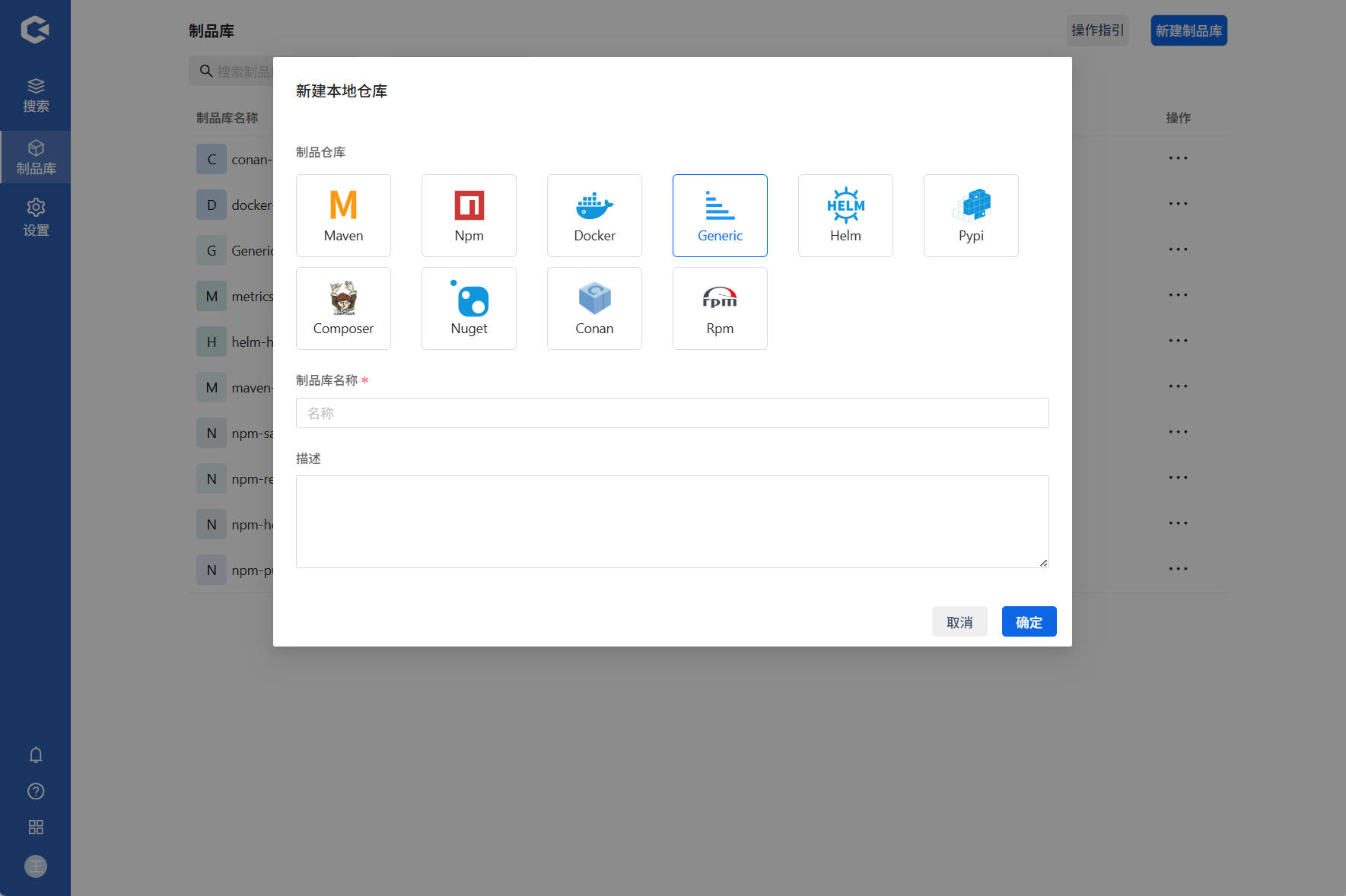 通用类型的制品库,只支持本地库,创建方式和创建Maven类型的本地库类似