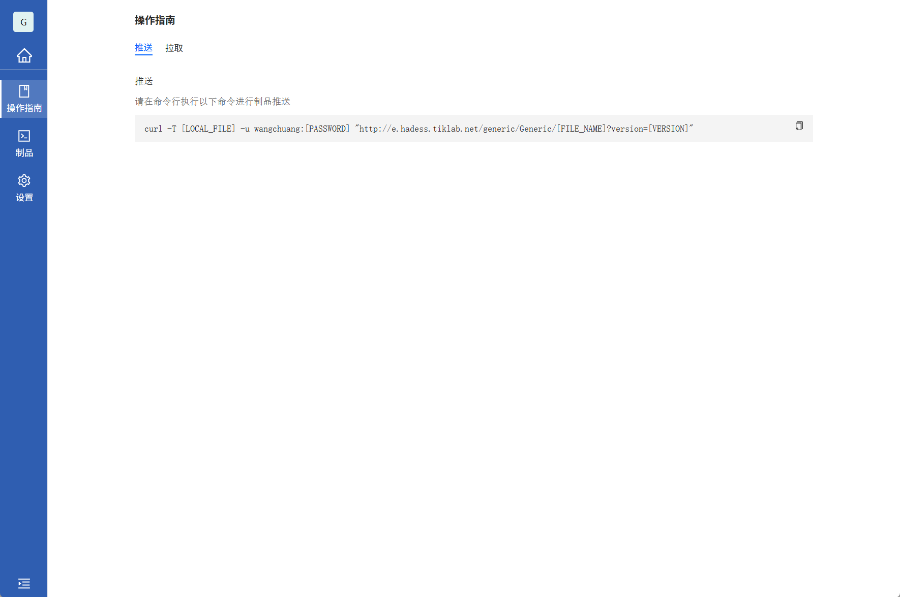 将自己或者团队打包的制品库根据操作指南推送到本地库