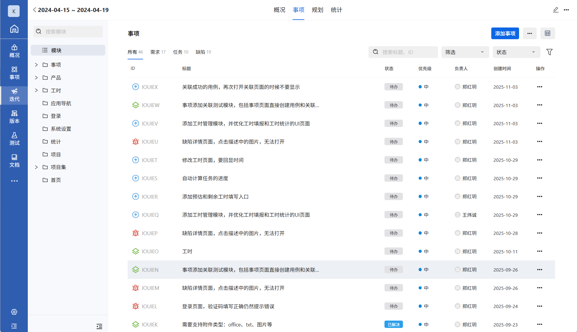 - 点击迭代名称进入迭代页面,可以为当前迭代添加事项