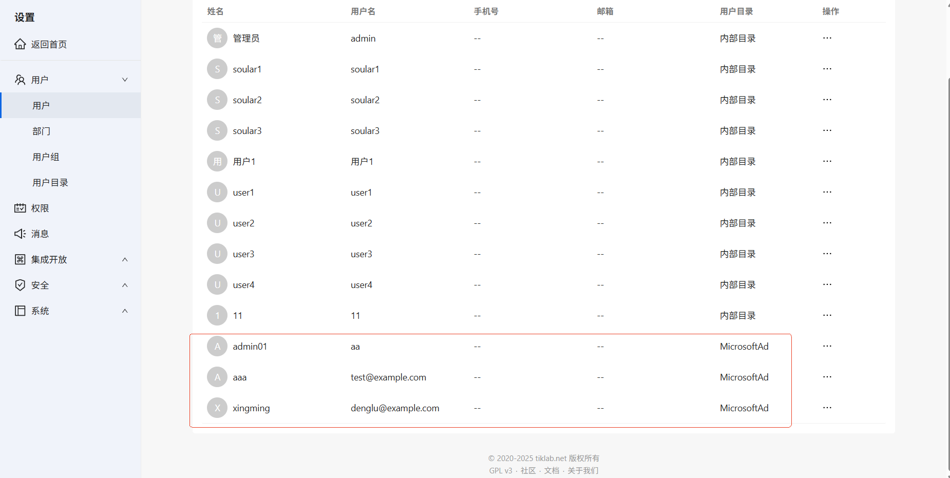 同步成功后,进入用户页面,可以查看到导入用户