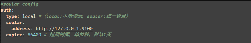 | type | local:本地登录 soular:统一登录。配置文件中默认为local |