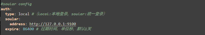 | address | 配置统一登录时填写soular地址,http://ip:9100,IP为安装soular的机器IP |