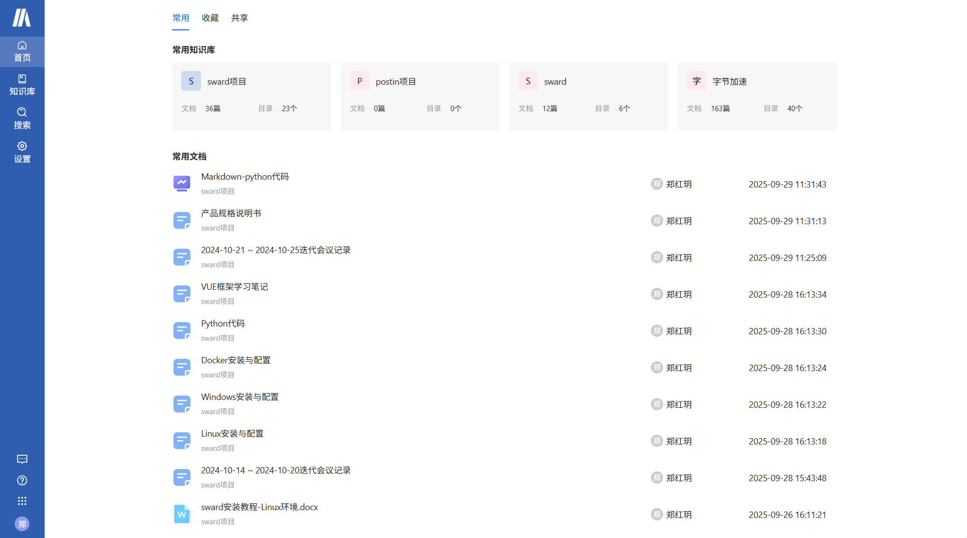 sward是一款国产开源企业级知识管理工具,包含知识库管理、文档管理、文档协作、文档分享等模块,支持普通文档、markdown等格式,产品简洁易用、开源免费。