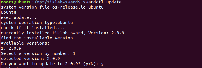 可以使用swardctl update命令,进行升级