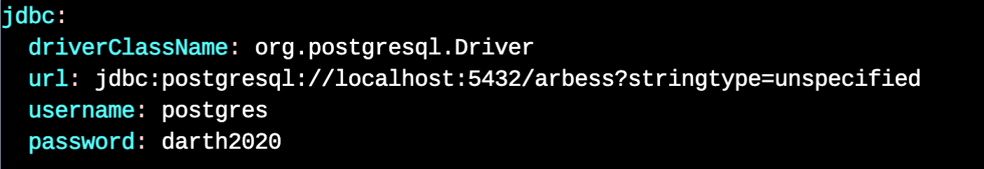 | jdbc.url | 默认是:jdbc:postgresql://localhost:9201/tiklab_arbess?stringtype=unspecified 其中 9201 为端口号,tiklab_arbess为数据库名字。 |