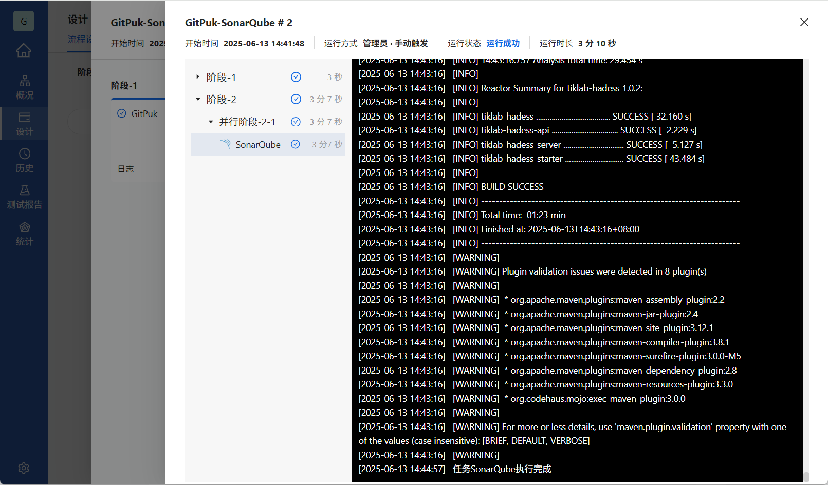 成功运行流水线,点击测试报告→代码扫描→SonarQube,查看SonarQube代码扫描报告。