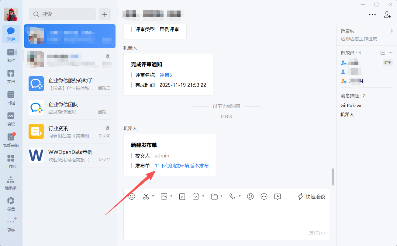 至此,使用Arbess成功搭建流水线,开启流水线发布评审,并使用企业微信通知评审人进行评审。