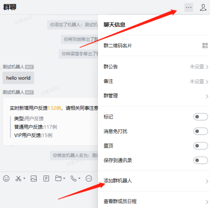 配置流水线发布通知企业微信,需要配置企业微信机器人Hook地址。企业微信管理员在企业微信打开任意一个群聊 --> 右上角新建机器人 --> 输入信息完成 即可获取机器人Hook地址。