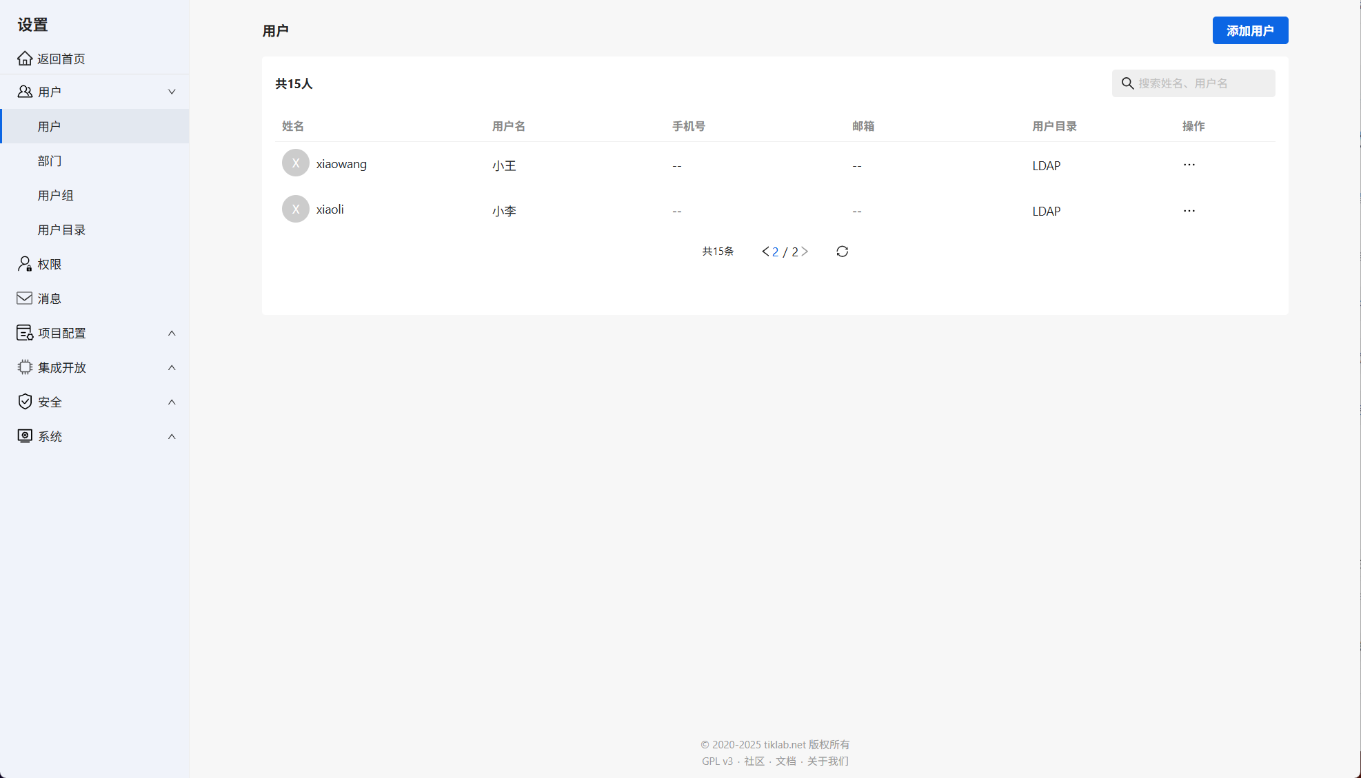 配置完成后在用户列表可以查询到同步的LDAP用户。