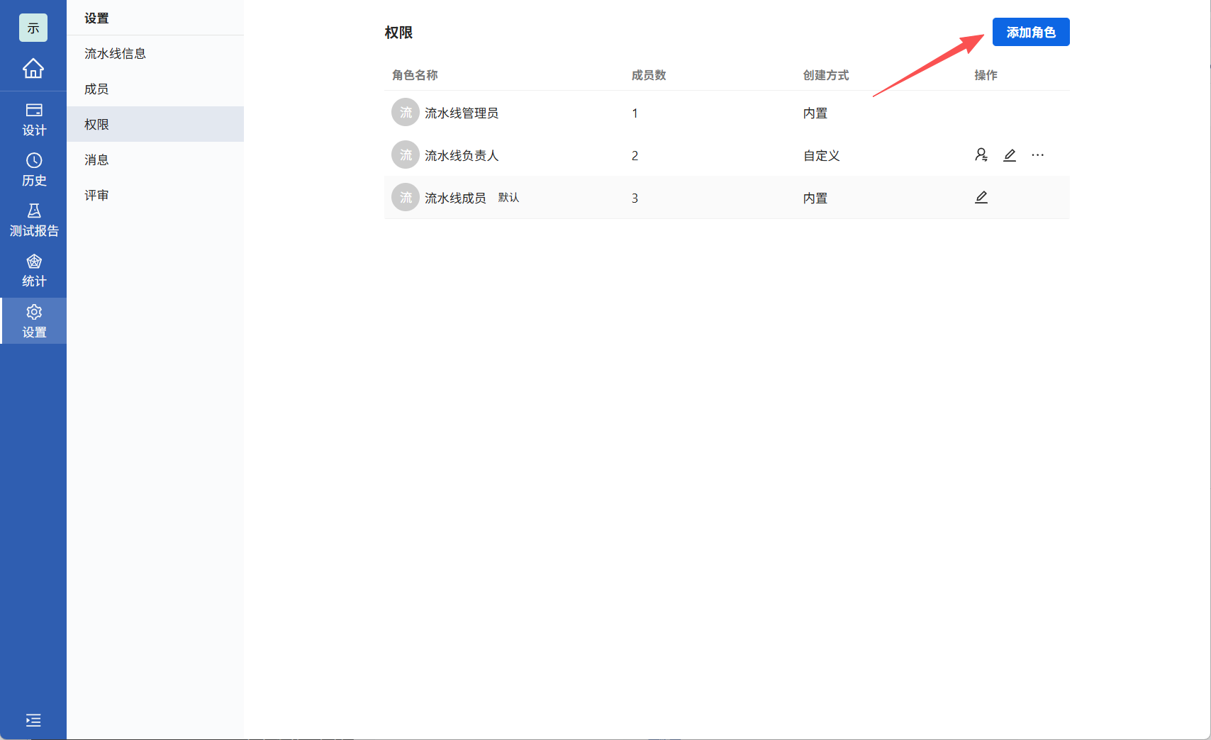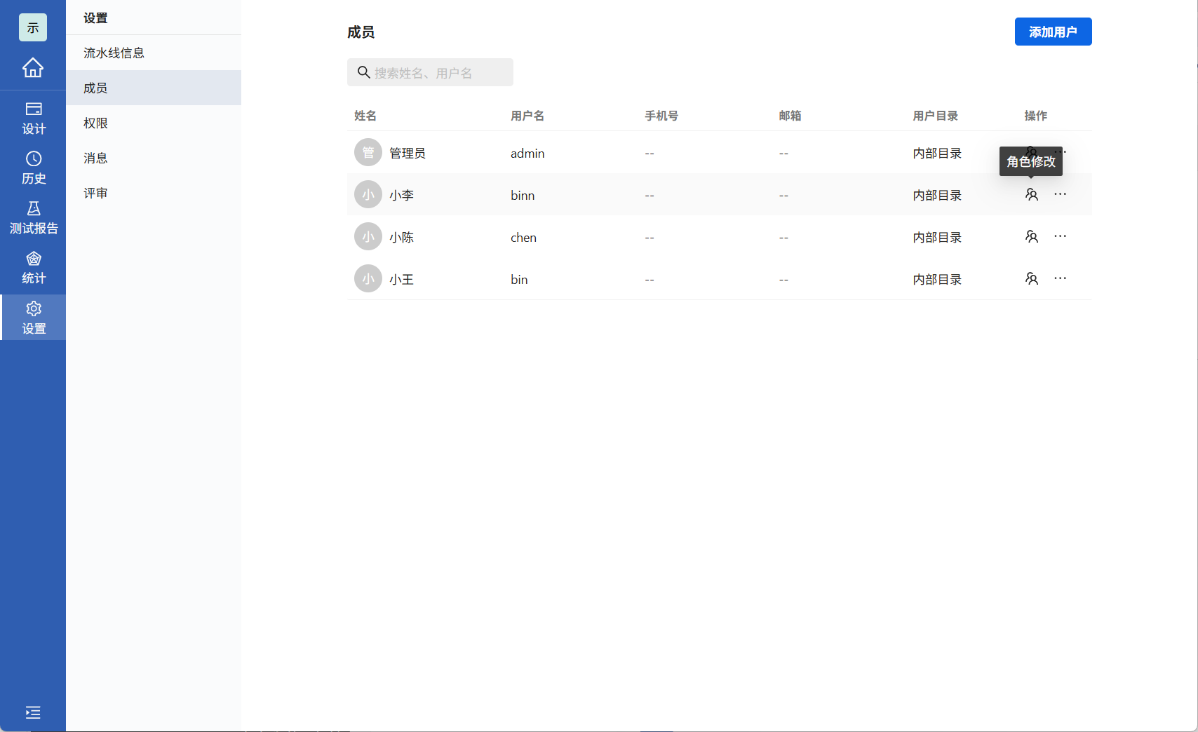 流水线角色添加完成后,在流水线成员列表找到成员,修改成员角色。