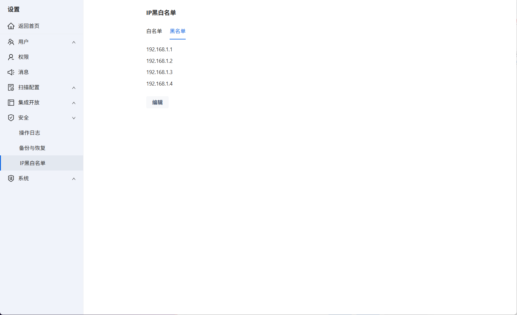编辑IP黑名单