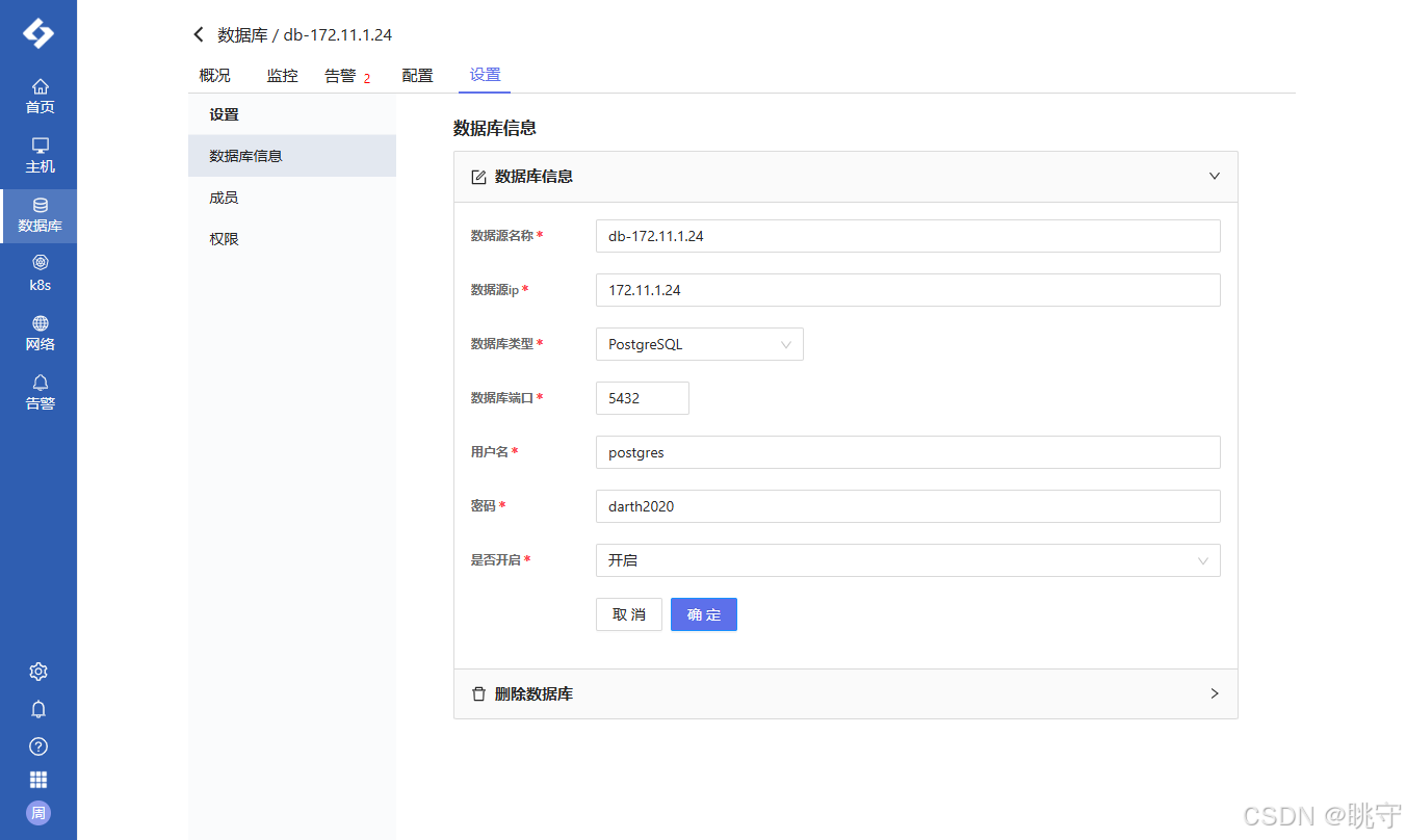 数据库监控的信息配置,编辑数据库和删除数据库需要注意的事项和操作步骤。