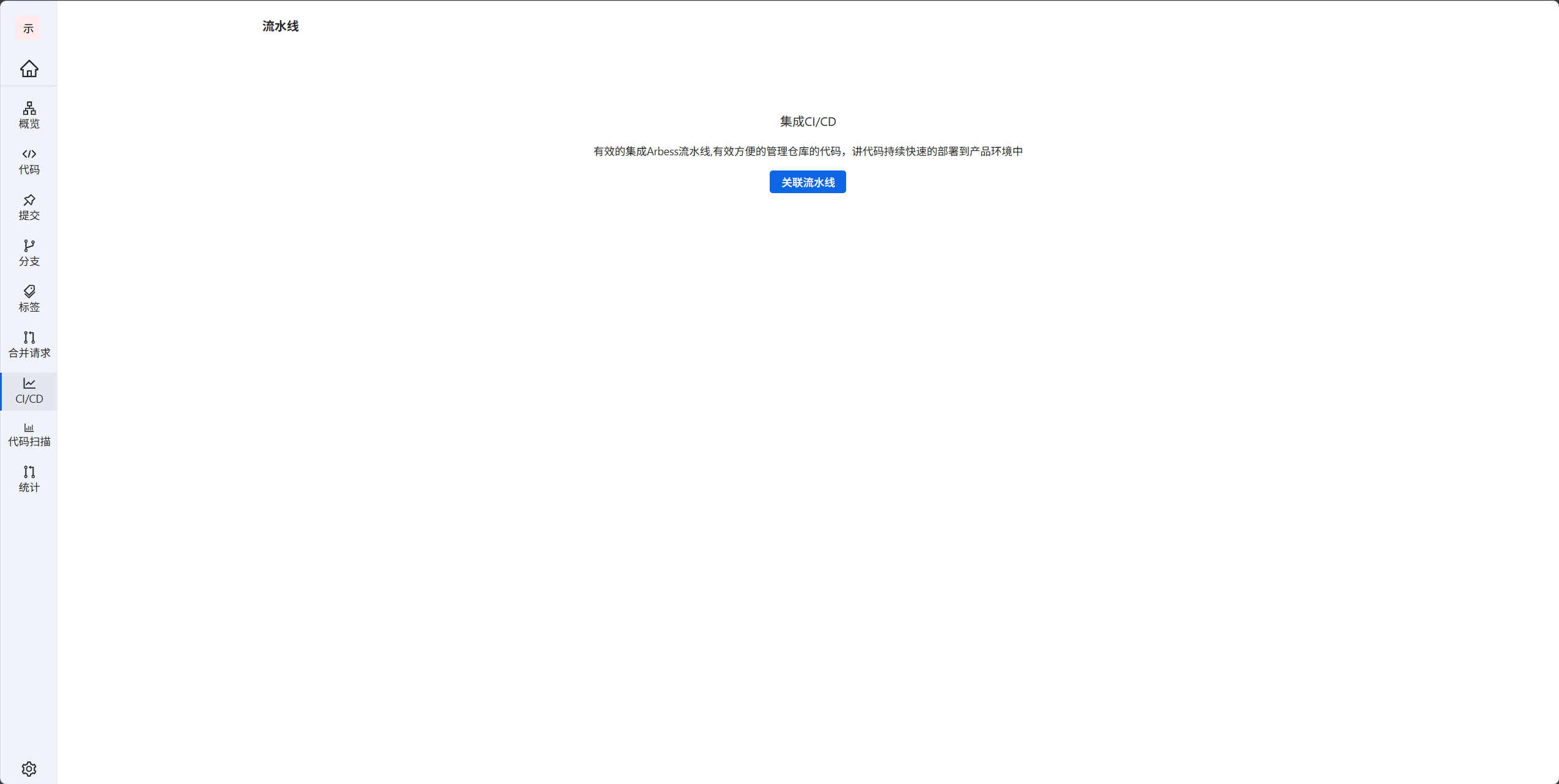 2.进入后,点击左侧的Cl/CD后,打开关联流水线