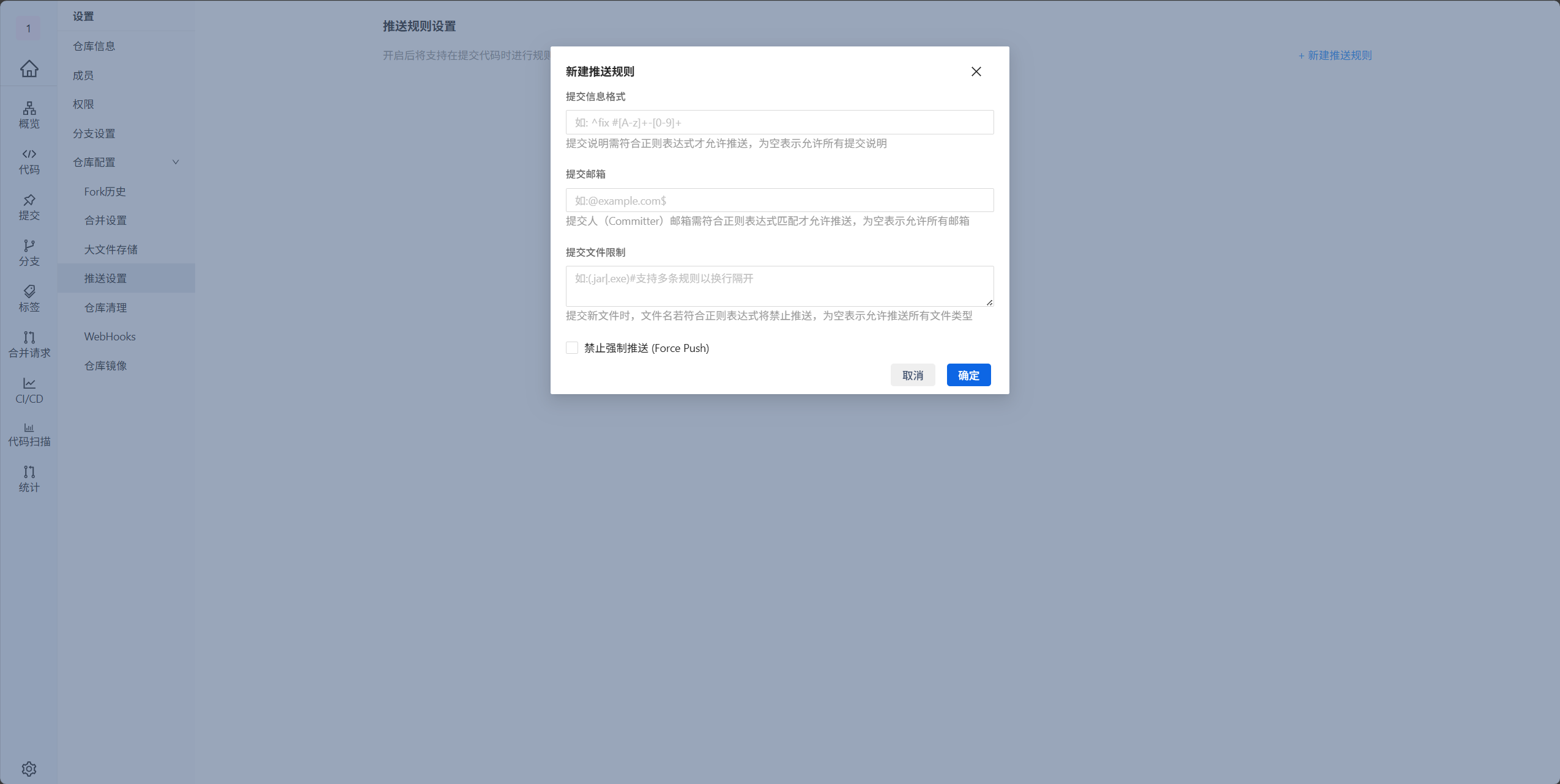3、代码推送规则设置使用指南
