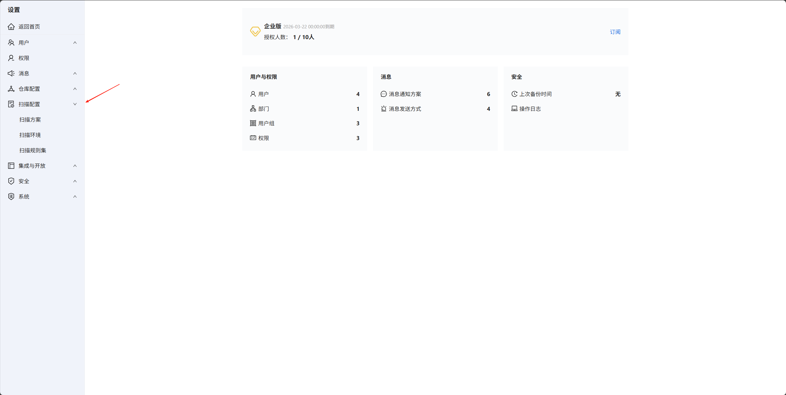 2.进入设置后,点击扫描配置