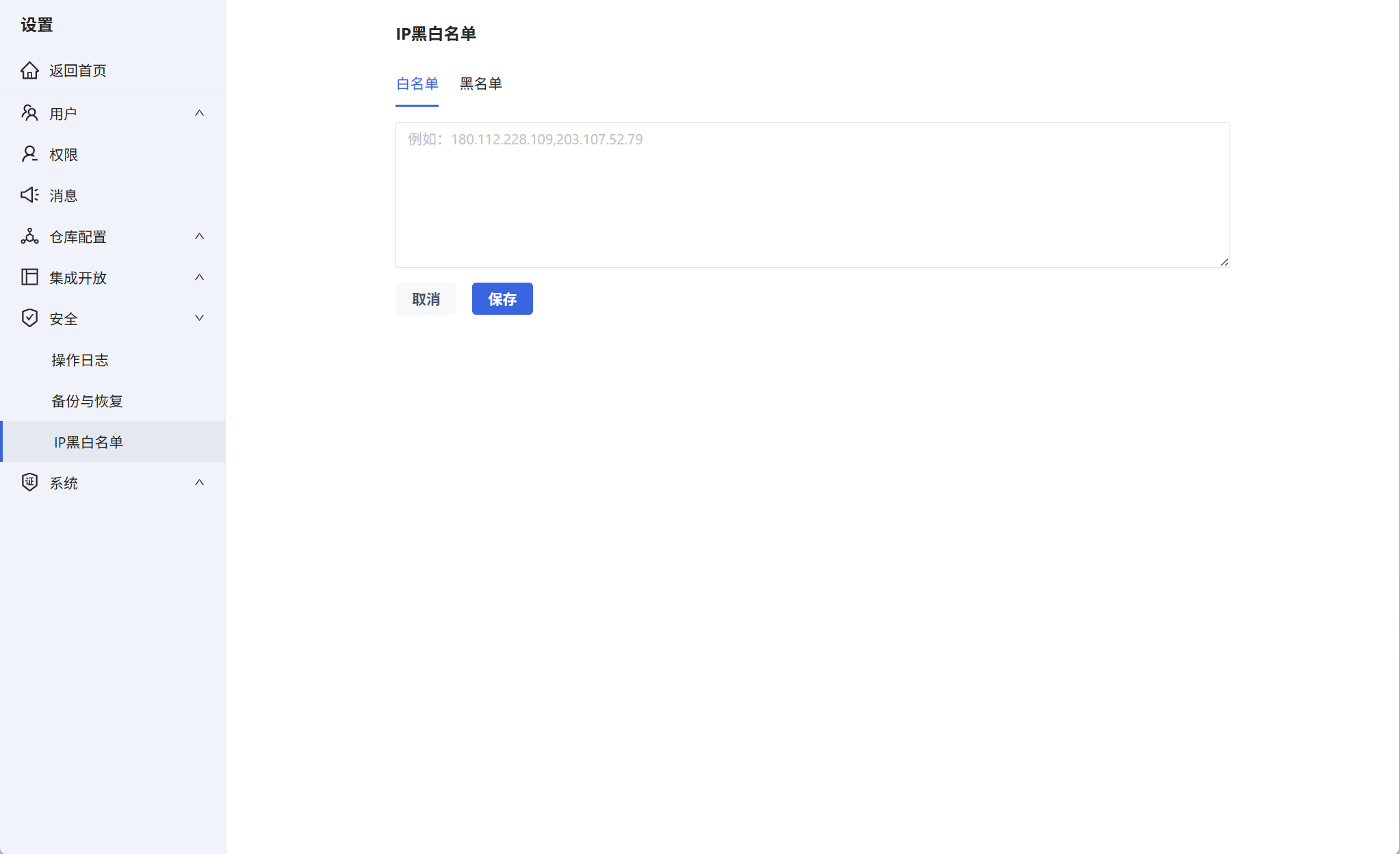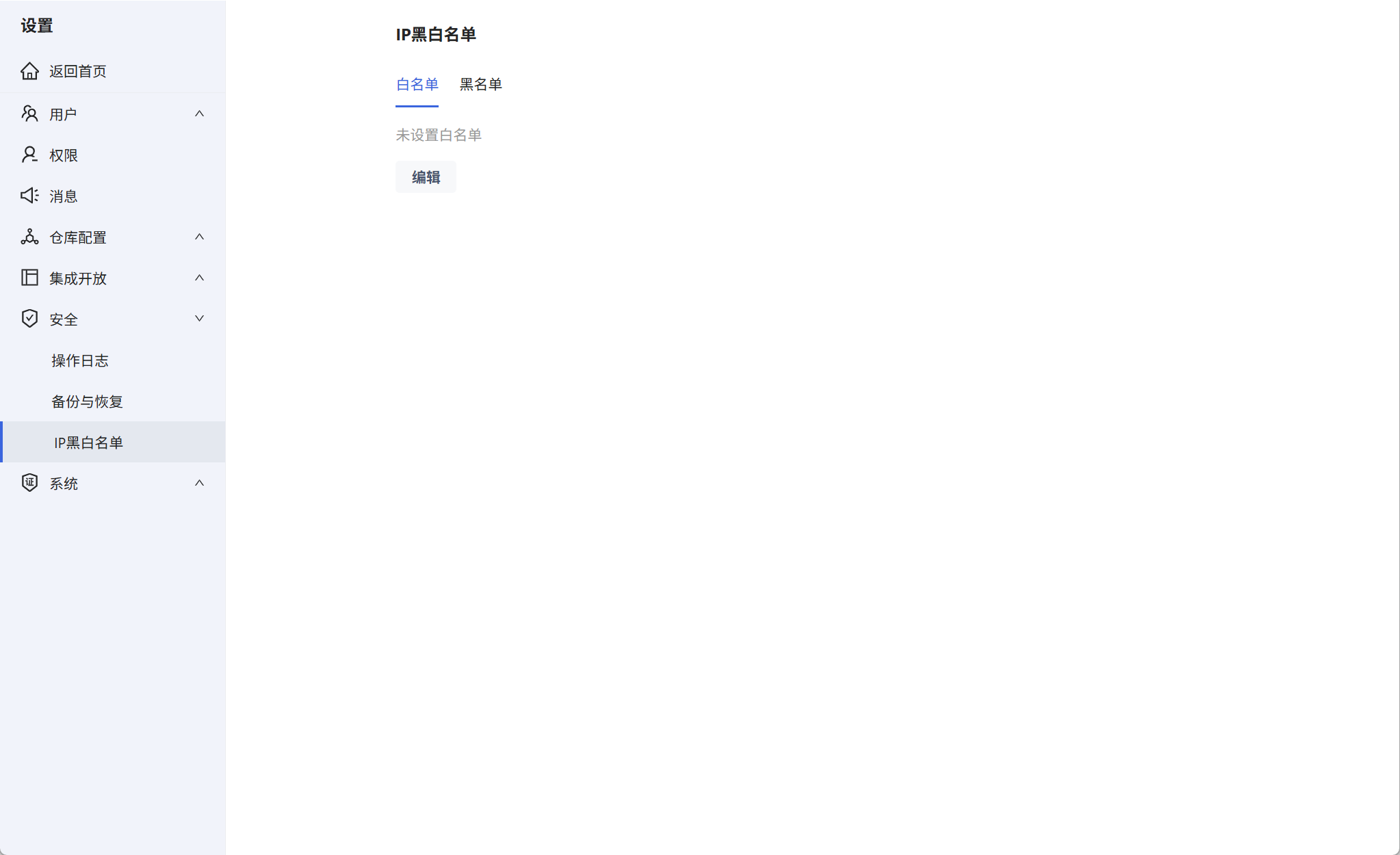 2.进入设置后,点击左侧安全后点击ip黑白名单