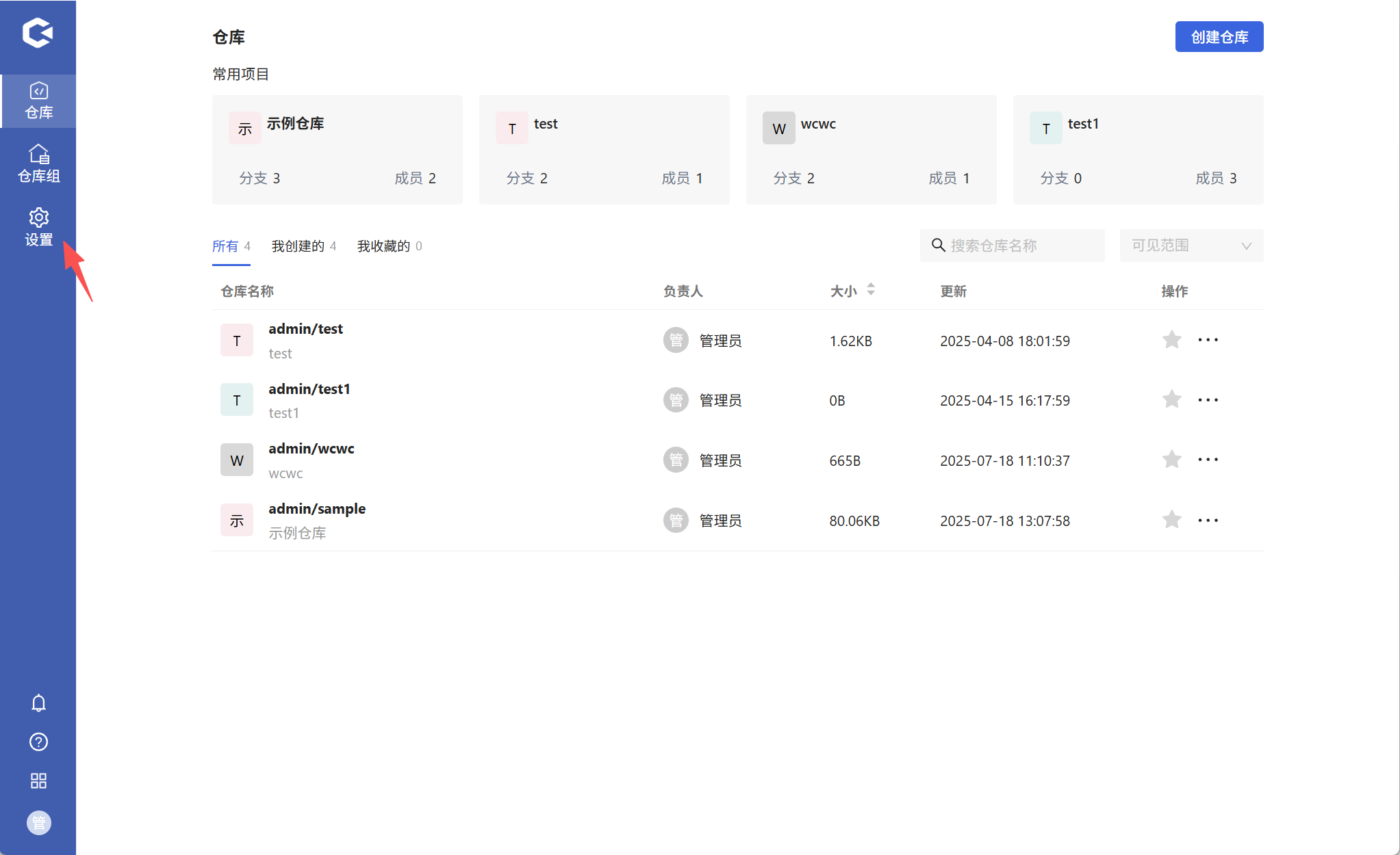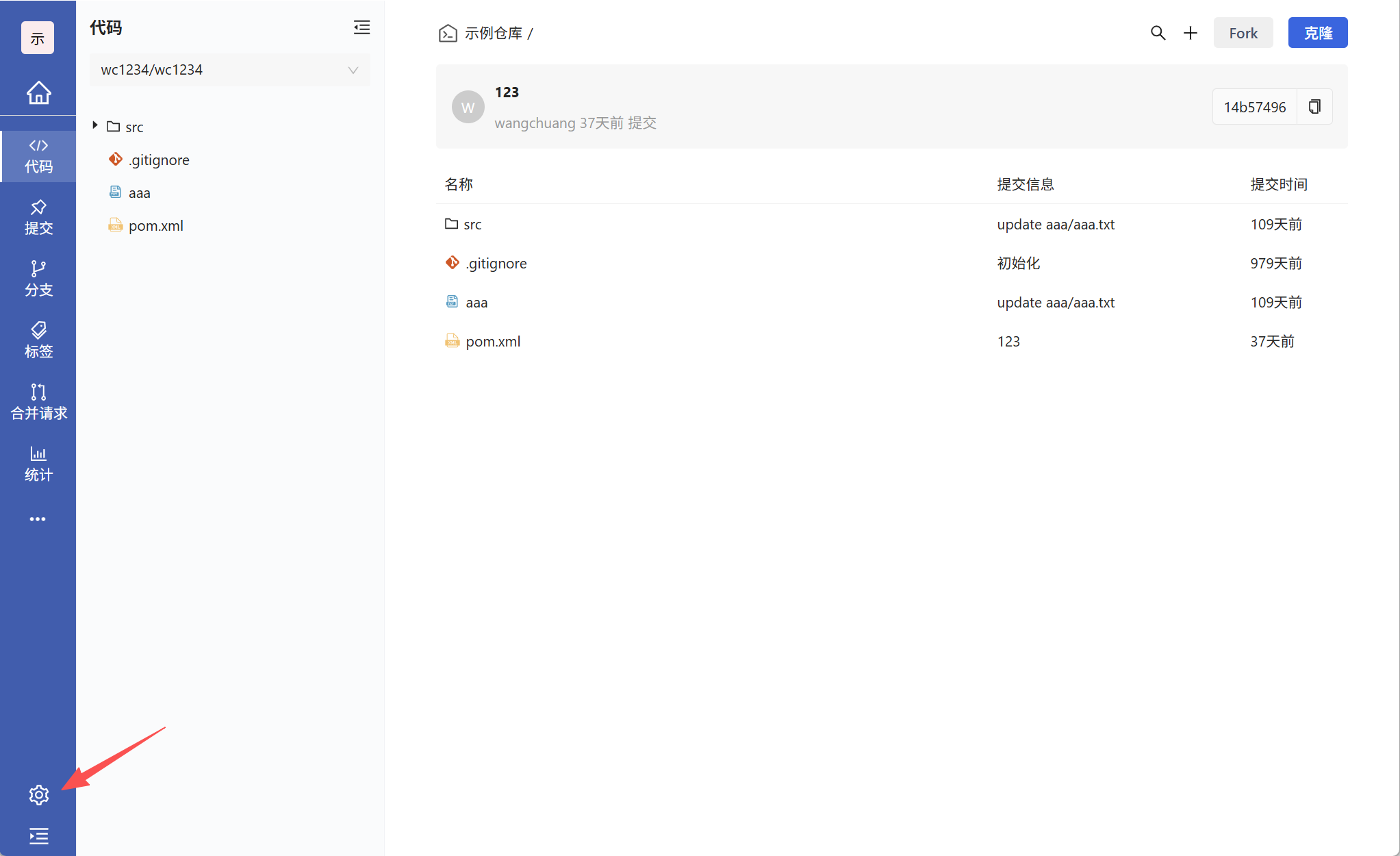 1.点击你所创建的仓库,进入后点击左下角设置按钮
