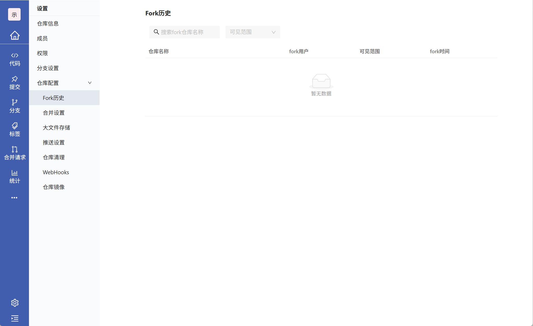 2.进入设置后打开仓库配置,点击fork历史即可查看
