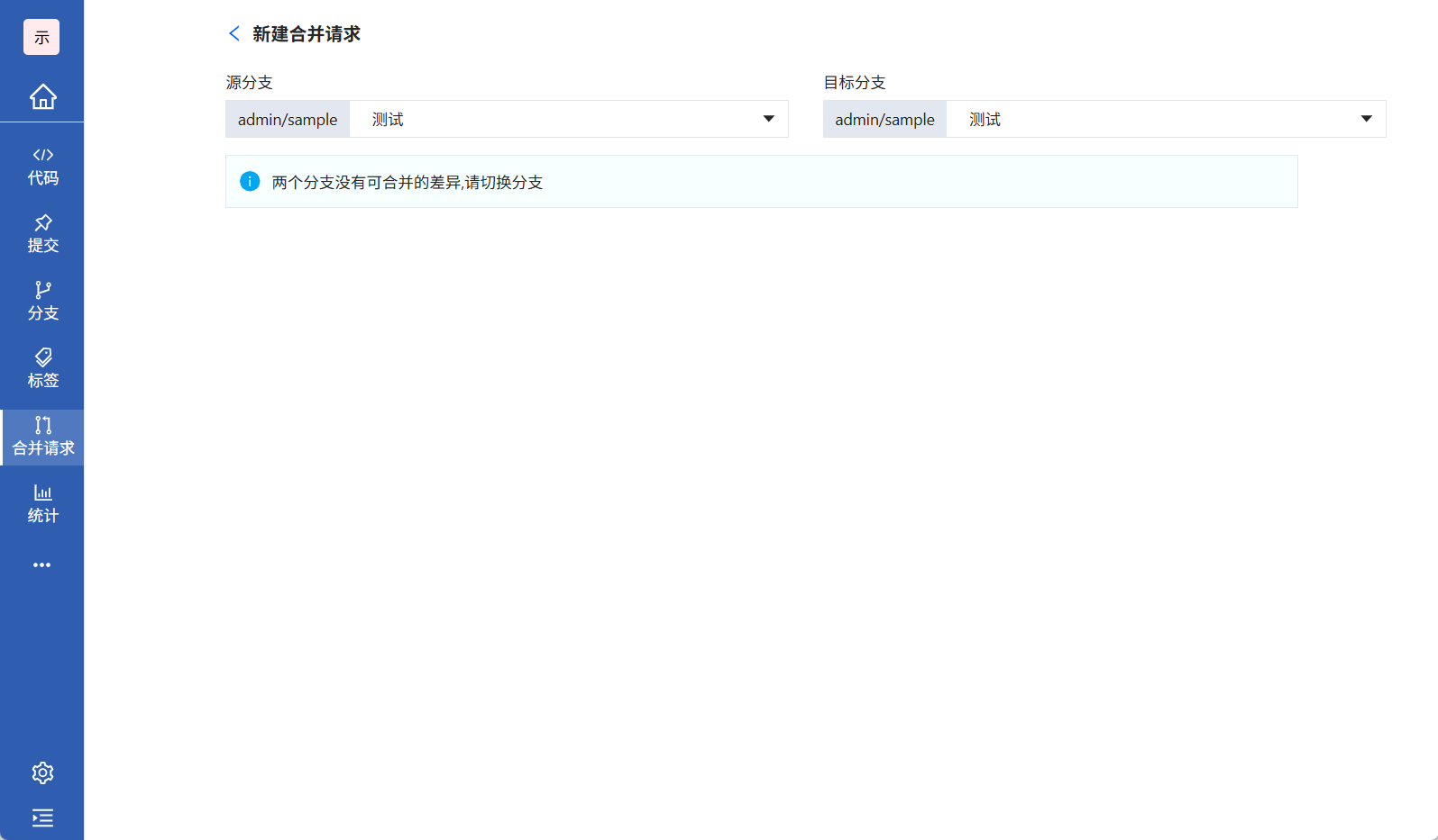 1.新建评审时两个分支没有可合并的差异则不能进行合并
