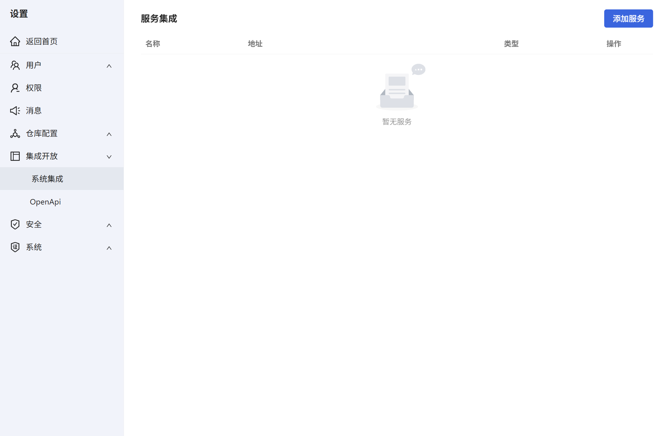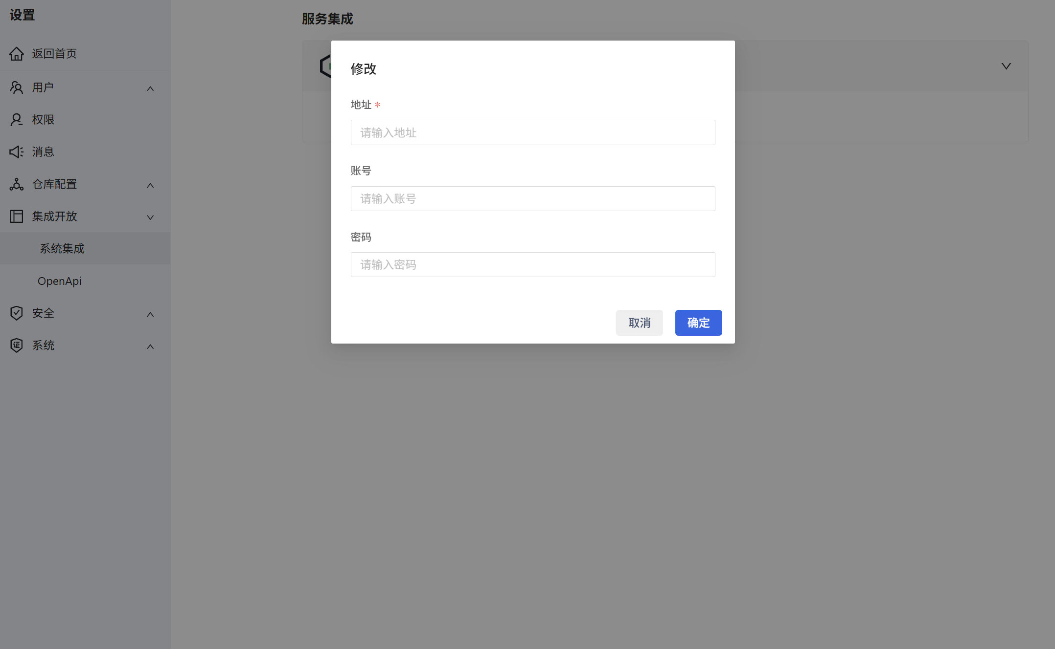 1,进入Hadess主页后,点击左侧设置进入设置页面,点击集成开放的系统集成