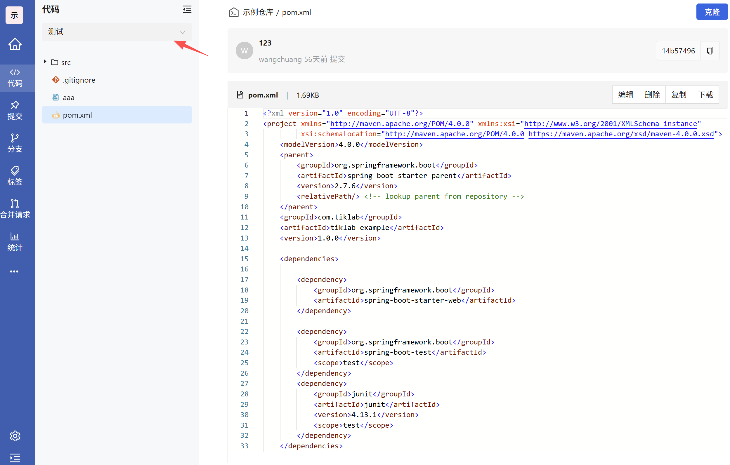 - 复制commitId