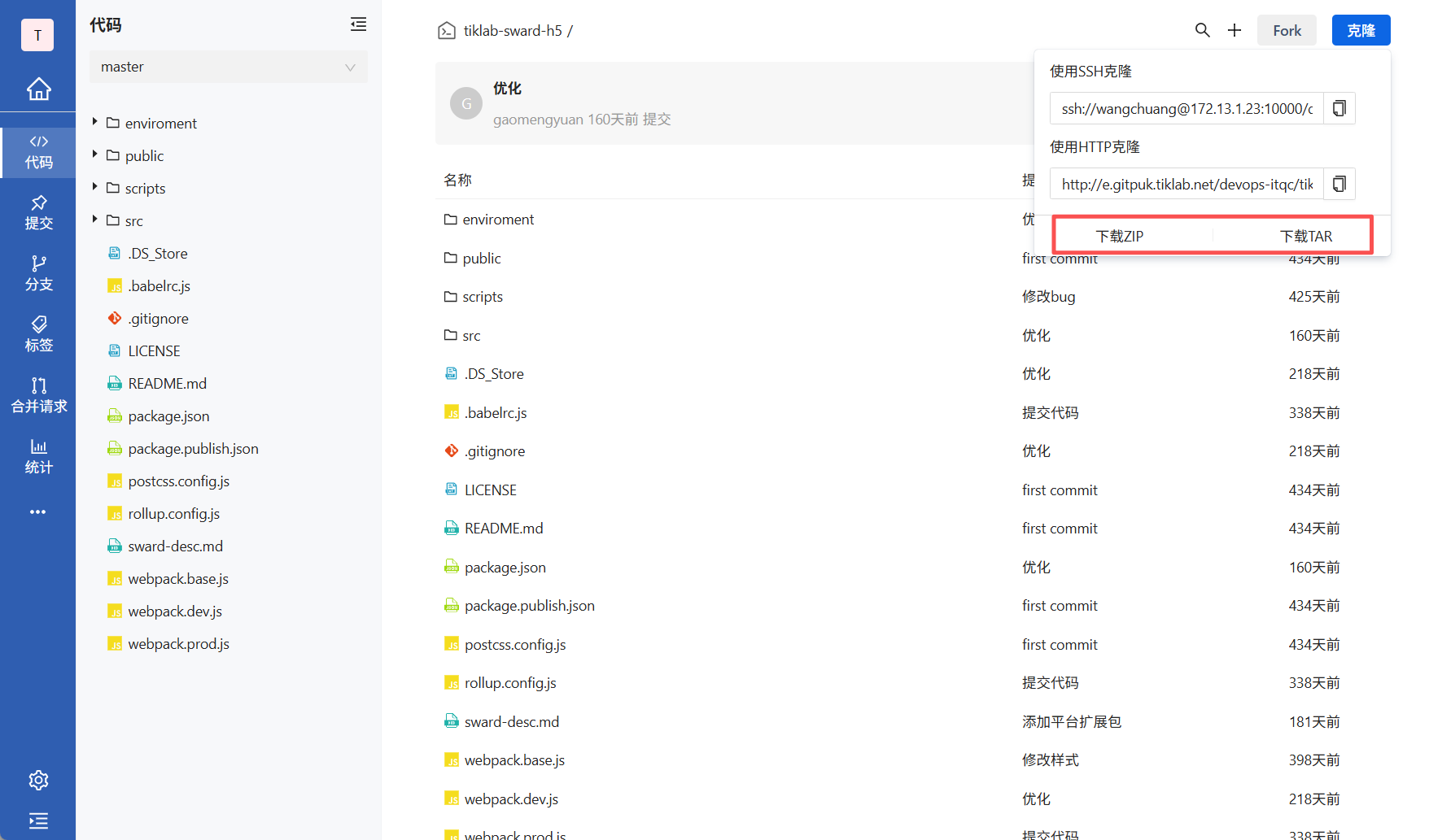 GitPuk除了拉取之外也同样支持下载,可以选择你要的格式进行下载