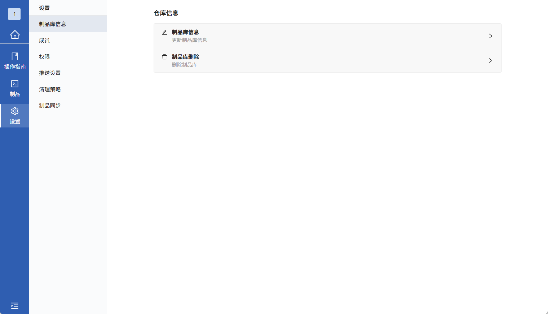 进入Hadess系统后点击你需要制品同步的本地库中,进入设置页面