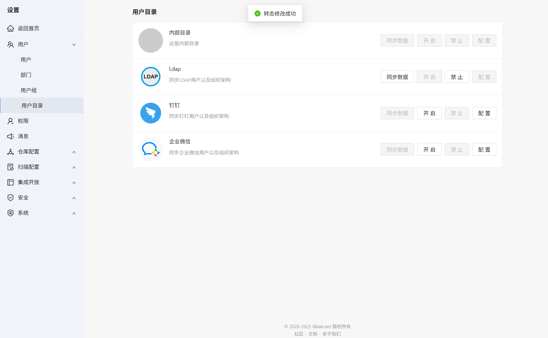 进入系统设置→用户→用户目录需要配置LDAP。