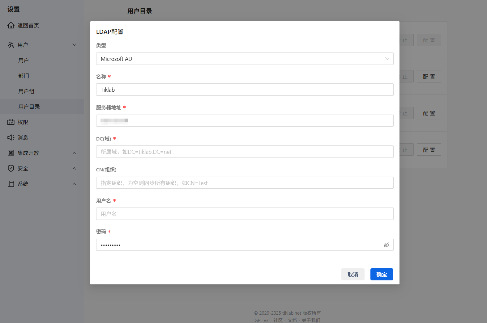 支持OpenLDAP和Microsoft AD两种类型的LDAP。