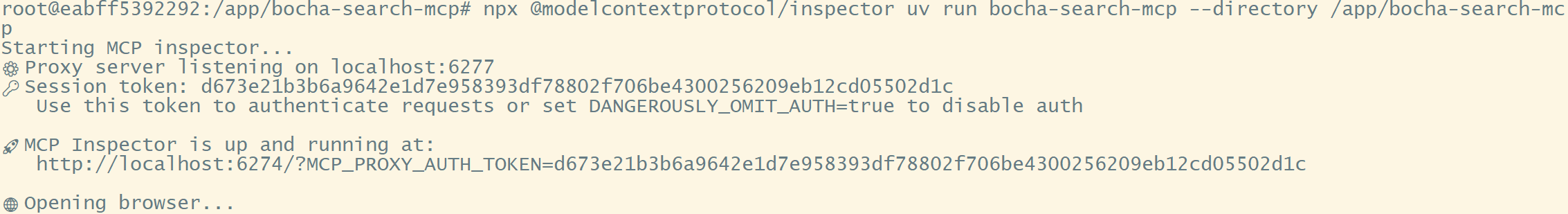 npx @modelcontextprotocol/inspector uv run bocha-search-mcp --directory /app/bocha-search-mcp