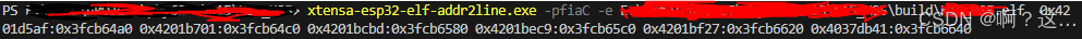 xtensa-esp32-elf-addr2line.exe -pfiaC -e project 你的工程编译保存路径\build\你的程序名.elf log打印的断点