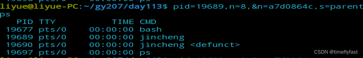 从图中可以看到,当子进程结束后,并没有消失,仍然可以在系统中观测到,但此时子进程其实已经运行结束了,此时子进程的状态被称为僵死状态,系统把处于该类状态的进程称为僵死进程。 如果父进程先结束,子进程最后是不会变为僵死进程的。