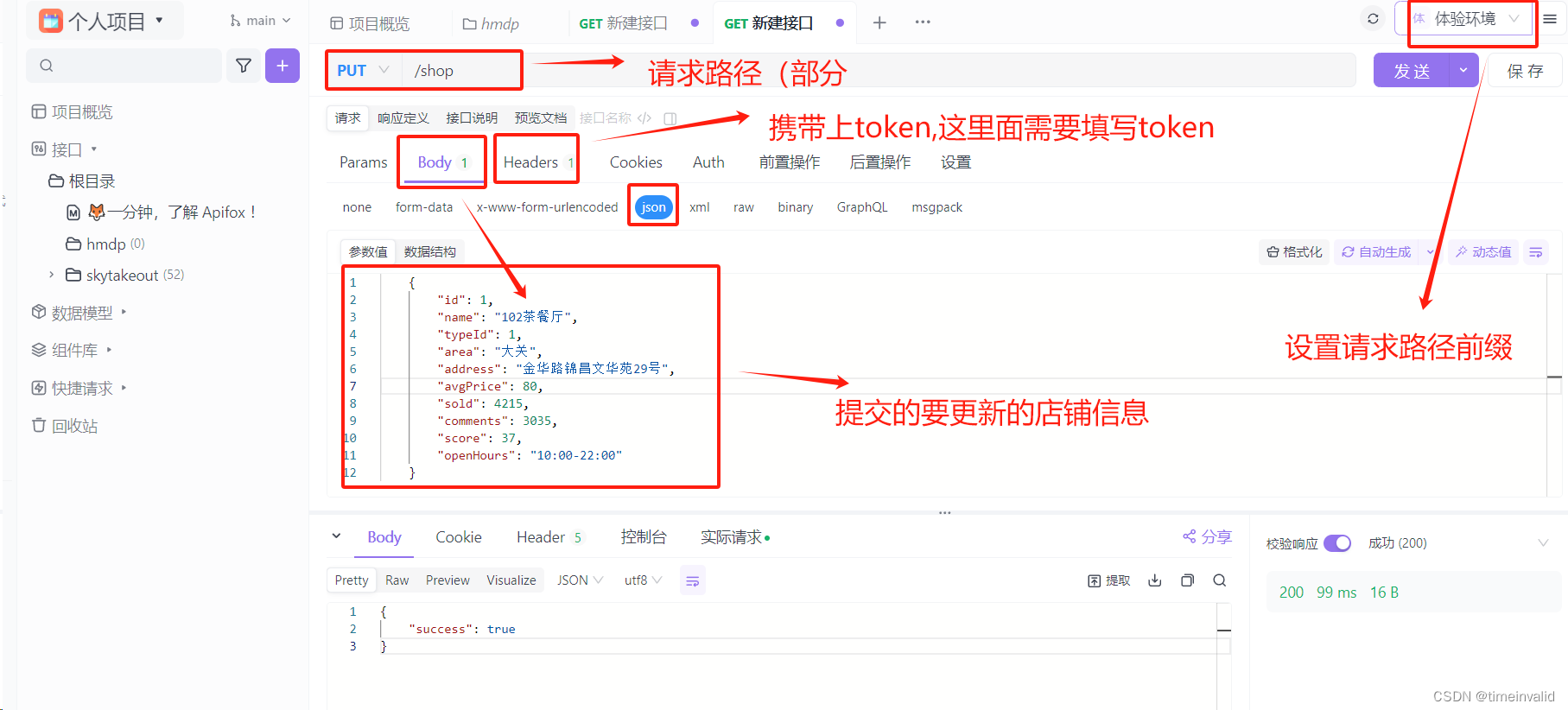 2.下面大致扫一下要主要地方。这里选择put方式,路径填写/shop(具体后缀)