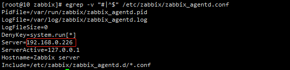egrep -v "#|^$" /etc/zabbix/zabbix_agentd.conf