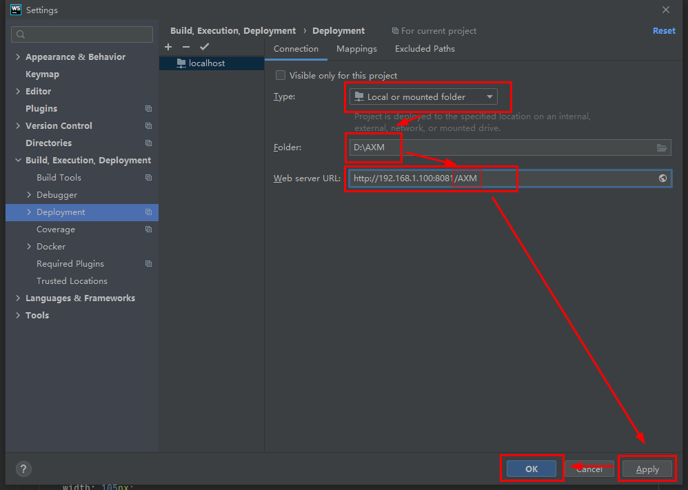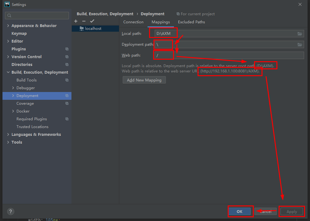 ⑥ 设置mappings(中的地址与前面保持一致(前端页面本地文件夹路径))