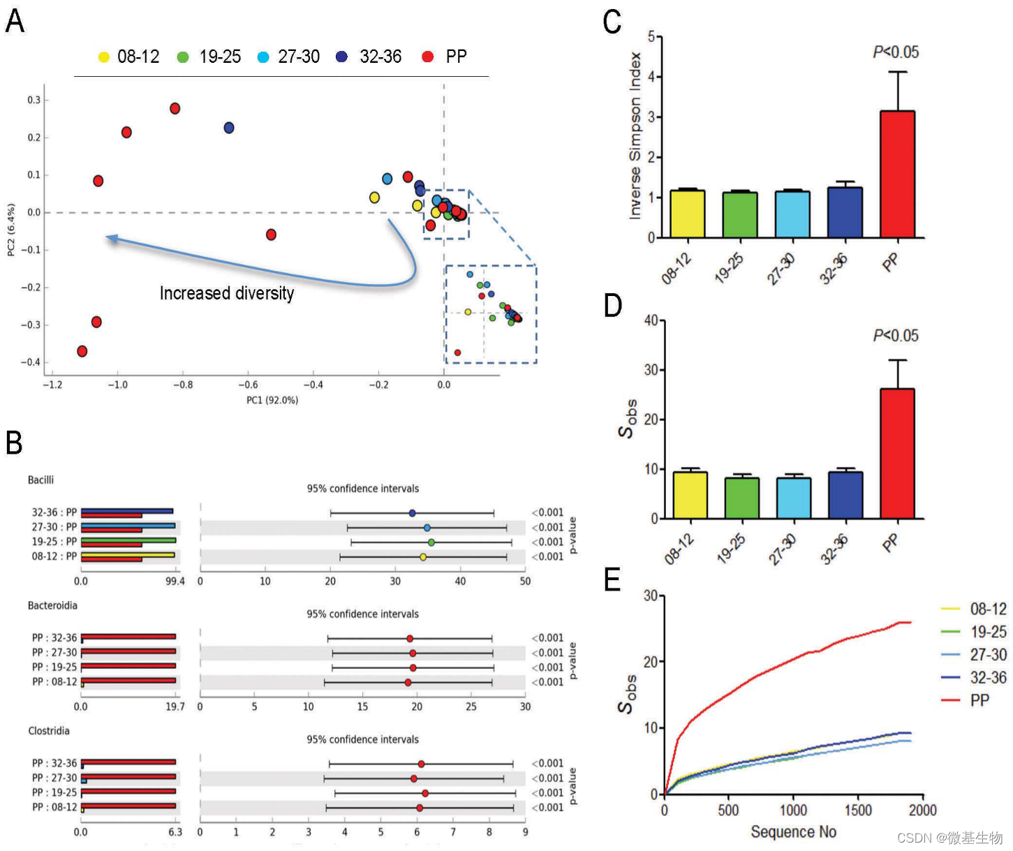 (1)细菌多样性在产后妇女的阴道中明显增加