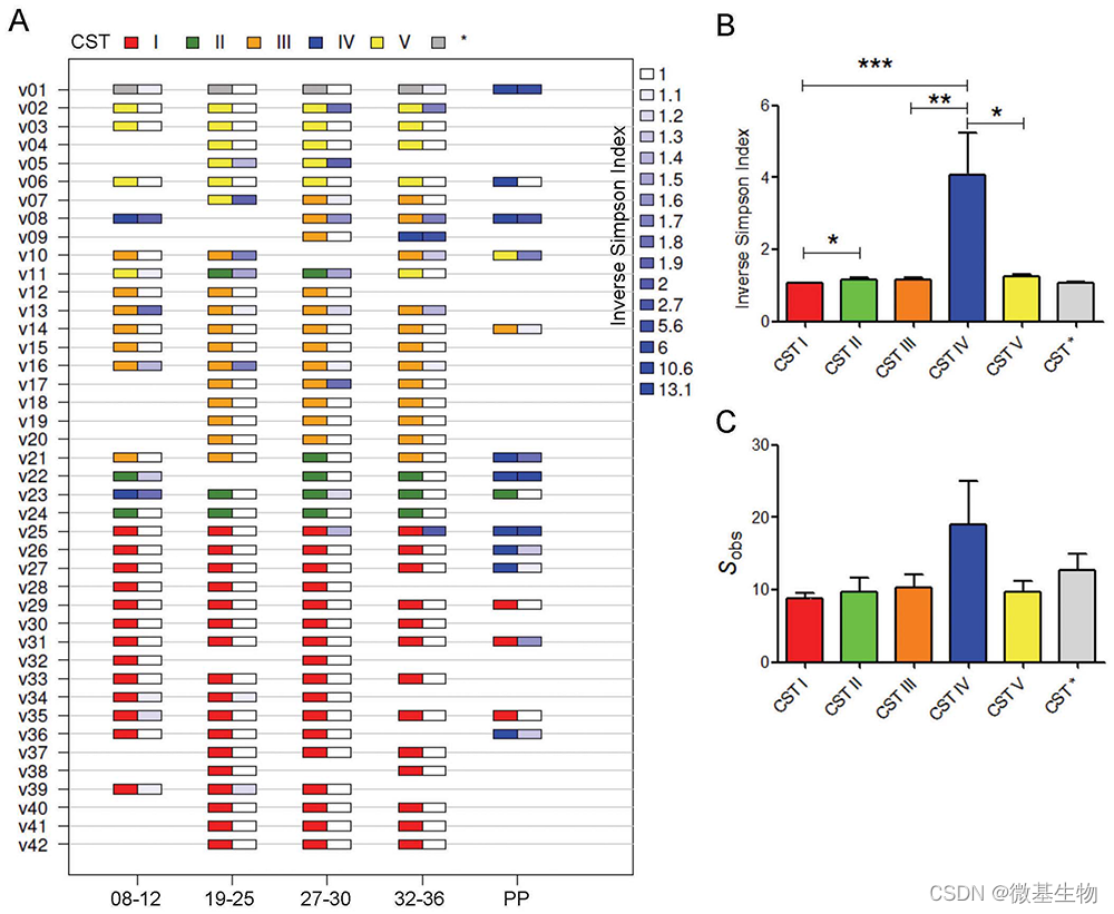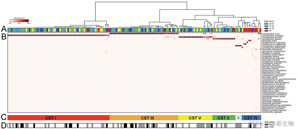 (2)在怀孕8周一直到产后,阴道微生物的在种水平上的组成变化图
