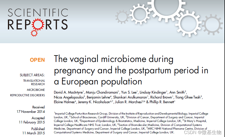 标题:欧洲妇女产前和产后一段时间内阴道微生物的变化