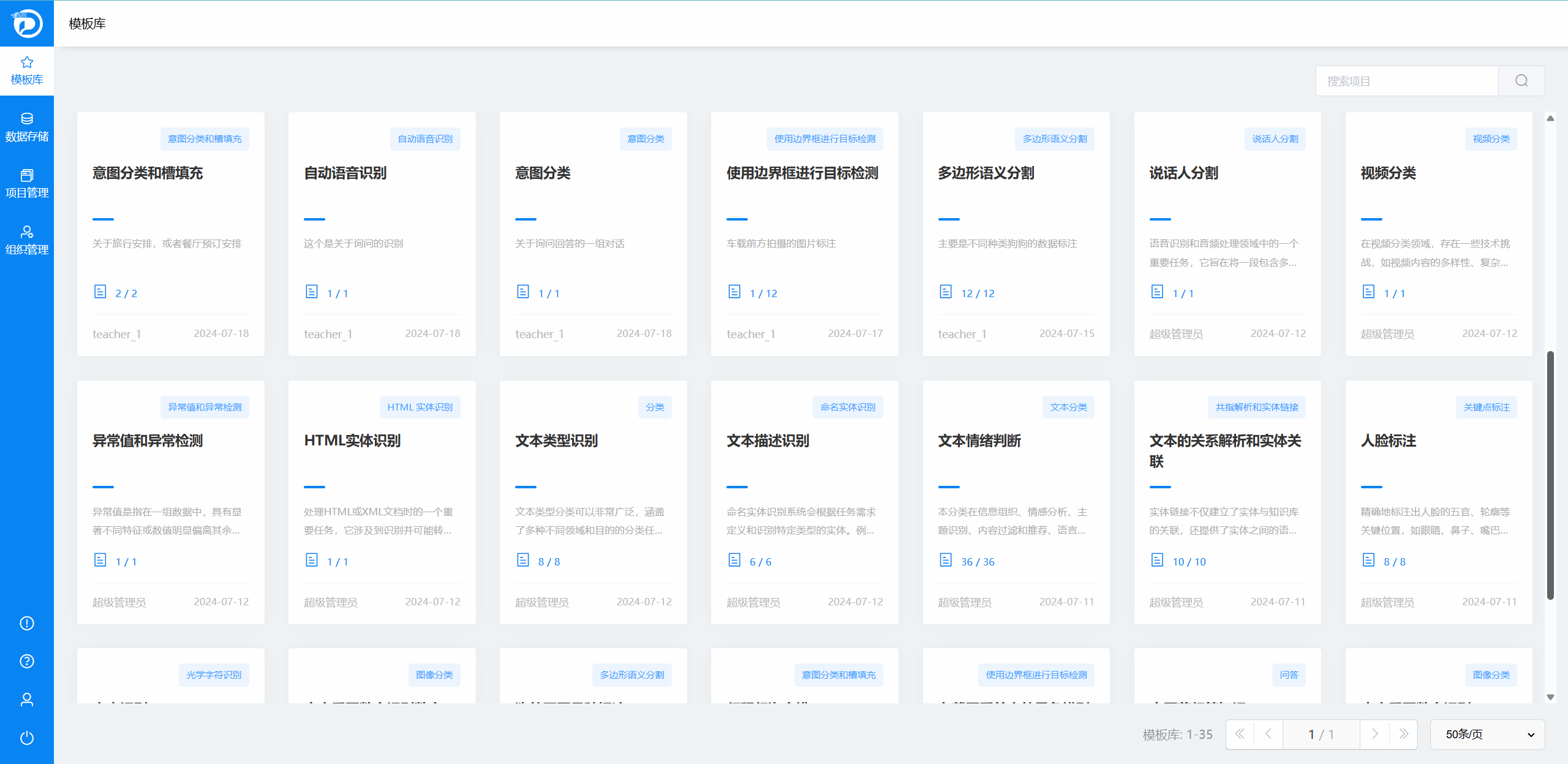 全面的模板库是首要亮点。平台预置了近30个覆盖多行业、多技术领域的标注任务模板。这些模板不仅提供了可复用的标注模式,更将行业最佳实践和标注规范融入其中。