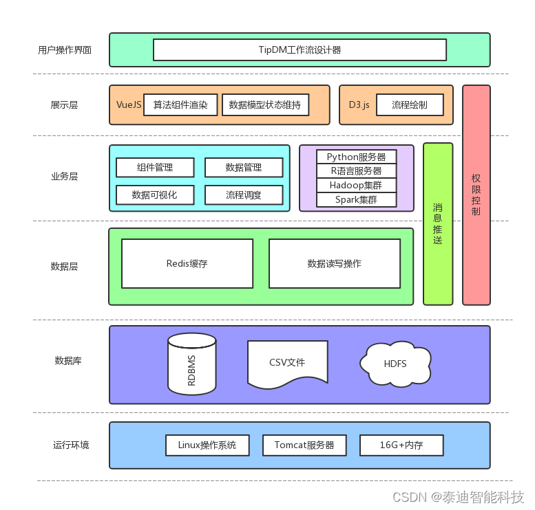 TipDM大数据挖掘建模平台是由泰迪科技自主研发打造的可视化、一站式、高性能的数据挖掘与人工智能建模服务平台.平台采用可视化操作方式,通过丰富内置算法,帮助用户快速、一站式的进行数据分析及挖掘建模。可应用于处理海量数据、高复杂性的数据挖掘任务,提供准确、高精度的计算结果。