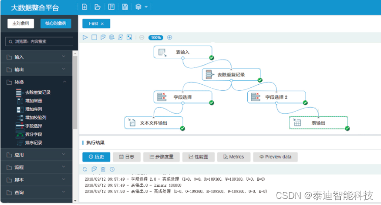 大数据综合实训平台包含数据整合与处理平台 大数据挖掘建模平台 大数据分析可视化平台 大数据采集平台,四个平台从数据的预处理到数据建模到最后数据的可视化,能让学生拥有完整的体验流程。大数据整合平台是一套ETL(Extract-Transform-Load)工具,能够实现将数据从来源端经过抽取(extract)、转换(transform)、加载(load)至目的端的过程,帮助教师与学生更高效、简便地将数据从业务系统迁移到数据分析数据库,并实现对数据的清洗、修改、计算、集成等处理,培养学生掌握数据迁移、整合的技能,达到与企业需求一致的效果
