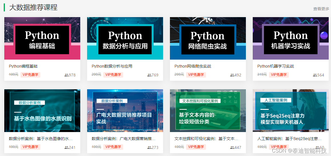 大数据挖掘课程案例资源分为【基础】版,【进阶】版,不同阶段的课程难易程度不一样,对学生的基础知识掌握要求也不一样。