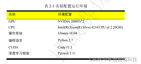 4.1.1 实验配置 本篇论文的实验都是基于 Ubuntu 系统下进行,使用 GPU 和 CPU 作为基础硬件, 具体配置运行环境如表 2-1 所示: