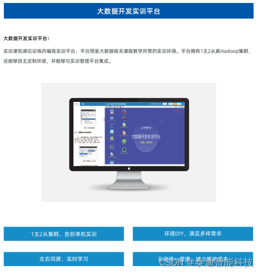 大数据产品包括:大数据实训管理平台、大数据开发实训平台、大数据编程实训平台等