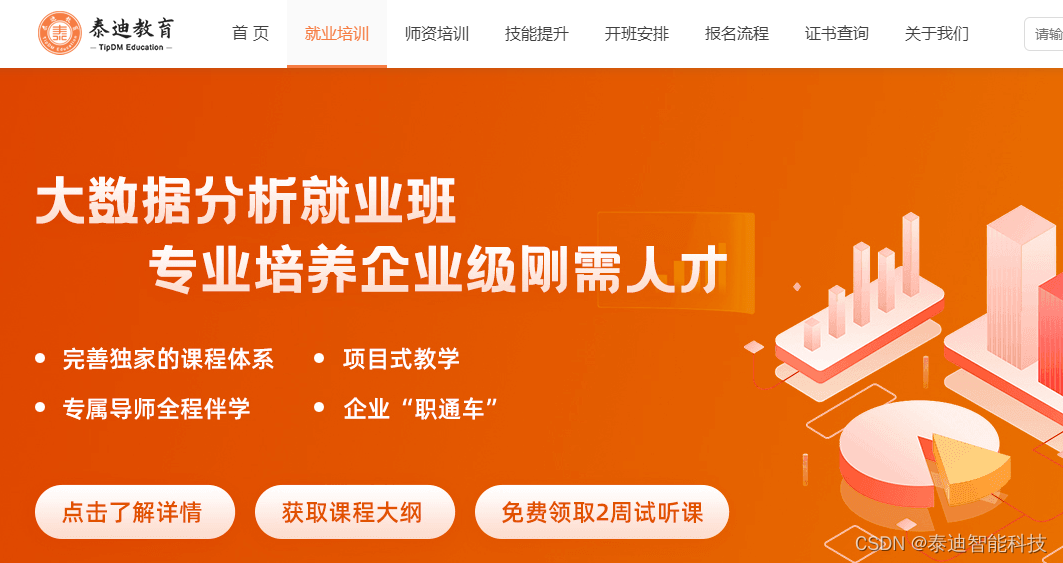 大数据分析就业班专业培养企业级刚需人才,拥有完善的独家的课程体系,采用项目式教学,专属导师全程伴学,最后帮助学生推荐就业。