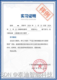 由广东泰迪智能科技股份有限公司提供对应项目的实习证明
