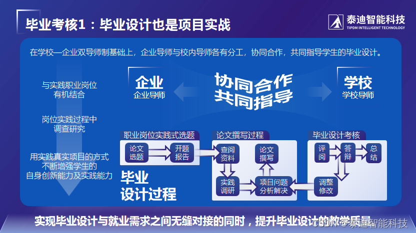泰迪智能科技打造基于产教融合就业育人综合服务平台,深化产教融合,持续完善三位一体的数据智能生态体系,促进教育链、人才链与产业链、创新链的有机衔接,为培养高素质创新人才及企业数据智能应用落地略尽绵薄之力。