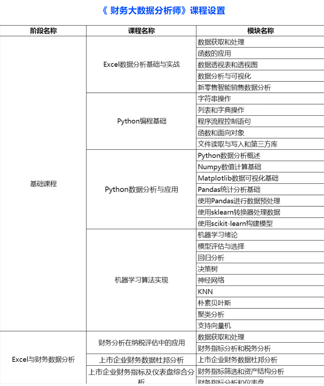 财务大数据分析师课程是一套涵盖专业化知识架构、科学化培养路径与系统化考核标准的高端财务数据人才培养体系。该体系旨在全面衡量从业者在财务数据处理、数据分析建模、智能工具应用及财务业务赋能等方面的核心能力,满足金融、企业财务、税务、电商等多行业对财务大数据专业人才的需求,助力企业以数据驱动财务决策优化、风险管控与业务升级。财务大数据分析师考试作为对该领域从业者的权威考核,共分为中级、高级两个等级,层级递进且覆盖不同阶段职业发展需求。