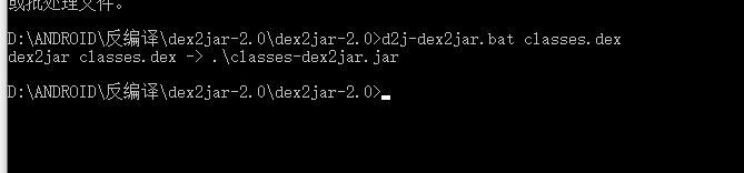 cmd命令行输入 d2j-dex2jar.bat classes.dex
